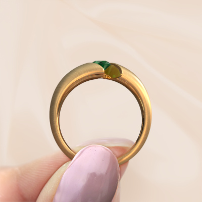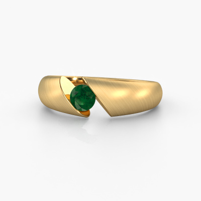 This ring called Hojalien 1 is made of 14 Carat gold and is set with emerald. Are you in the market for a unique gold ring with a modern twist? Then this ring might suit you. Simply customize to your or her liking. It suits the contemporary modern woman. This tasteful ring is set with beautiful emerald. This has been carefully selected. Because your ring must be adorned with nothing but the most stunning gemstone. Our expert goldsmith will create your ring in our own studio, where the emerald will be set with great care. The ring will then be polished to perfection to create a stunning ring. By using our modern techniques, we can design and customize the finest quality jewels with the utmost care for you. Our rings are always priced 30 percent lower than other jewellers. We make rings to order, so we don't have to maintain a large stock. If you have a certain budget, we are more than happy to advice you accordingly.