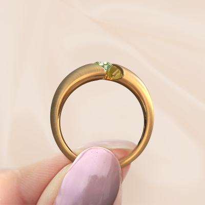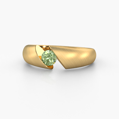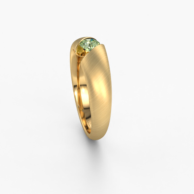 This ring called Hojalien 1 is made of 14 Carat gold and is set with green lab grown diamond. Are you in the market for a unique gold ring with a modern twist? Then this ring might suit you. Simply customize to your or her liking. It suits the contemporary modern woman. This tasteful ring is set with beautiful green lab grown diamond. This has been carefully selected. Because your ring must be adorned with nothing but the most stunning gemstone. Our expert goldsmith will create your ring in our own studio, where the green lab grown diamond will be set with great care. The ring will then be polished to perfection to create a stunning ring.