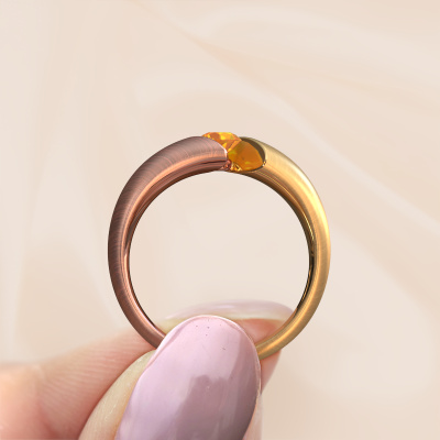 This ring called Hojalien 1 is made of 14 Carat rose gold and is set with citrin. Are you in the market for a unique rose gold ring with a modern twist? Then this ring might suit you. Simply customize to your or her liking. It suits the contemporary modern woman. This tasteful ring is set with beautiful citrin. This has been carefully selected. Because your ring must be adorned with nothing but the most stunning gemstone. Our expert goldsmith will create your ring in our own studio, where the citrin will be set with great care. The ring will then be polished to perfection to create a stunning ring. By using our modern techniques, we can design and customize the finest quality jewels with the utmost care for you. Our rings are always priced 30 percent lower than other jewellers. We make rings to order, so we don't have to maintain a large stock. If you have a certain budget, we are more than happy to advice you accordingly.
