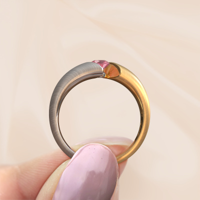 This ring called Hojalien 1 is made of 14 Carat white gold and is set with tourmaline pink. Are you in the market for a unique white gold ring with a modern twist? Then this ring might suit you. Simply customize to your or her liking. It suits the contemporary modern woman. This tasteful ring is set with beautiful tourmaline pink. This has been carefully selected. Because your ring must be adorned with nothing but the most stunning gemstone. Our expert goldsmith will create your ring in our own studio, where the tourmaline pink will be set with great care. The ring will then be polished to perfection to create a stunning ring. By using our modern techniques, we can design and customize the finest quality jewels with the utmost care for you. Our rings are always priced 30 percent lower than other jewellers. We make rings to order, so we don't have to maintain a large stock. If you have a certain budget, we are more than happy to advice you accordingly.