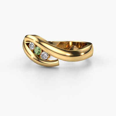 This ring called Ilene is made of 14 Carat gold and is set with tourmaline green. Are you in the market for a unique gold ring with a modern twist? Then this ring might suit you. Simply customize to your or her liking. It suits the contemporary modern woman. This tasteful ring is set with beautiful tourmaline green. This has been carefully selected. Because your ring must be adorned with nothing but the most stunning gemstone. Our expert goldsmith will create your ring in our own studio, where the tourmaline green will be set with great care. The ring will then be polished to perfection to create a stunning ring. Are you on a budget? Please feel free to contact us, so we can go discuss your options. We offer our rings at guaranteed best price, because we make them to order. You won't find such a price anywhere else!Our team of talented, passionate designers add new ring designs to our online collection daily. Our objective in doing so, is to be able to offer you a wide variety of jewels. Please feel free to request a quote if you have specific wishes for your ring. We guarantee to make you an offer you can't refuse.To make it easier for you, we offer a 30 day return policy. Check our terms and conditions.