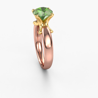Are you looking for a birthstones ring with an eye-catching single gemstone? How do you like this Jodie ring? This rose gold Jodie ring is set with a beautiful 8 mm round tourmaline green. The tourmaline green is carefully selected by our tourmaline green suppliers. Subsequently, these birthstones are then set by our goldsmith according to ancient tradition. The ring will then be polished to perfection creating a unique ring with a stunning tourmaline green. Created especially for you. A customized fantasy ring is the perfect gift! New exquisite designs are added daily by our team of passionate goldsmiths. And each design can be customized. Simply customize the precious metals and the colour of gemstones which will be used, for example. This makes your design of the fantasy Jodie ring truly unique!By using our modern techniques, we can design and customize the finest quality jewels with the utmost care for you. Our rings are always priced 30 percent lower than other jewellers. We make rings to order, so we don't have to maintain a large stock. If you have a certain budget, we are more than happy to advice you accordingly.To make it easier for you, we offer a 30 day return policy. Check our terms and conditions.