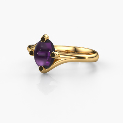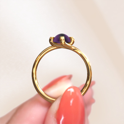 In this photo the gold Nora ring is set with a cabochon amethyst. Cabochon means a amethyst is shaped first, not faceted, into a specific shape, such as a drop, heart or oval cabochon. Subsequently, it is polished until the gemstone has a orb shaped surface. A cabochon gemstone is a stunning, classy eye-catcher that matches perfectly with a contemporary as well as a vintage style. Our expert goldsmiths shape the graceful ring to perfection which makes it unique. The cabochon amethyst is set so its unique qualities are strengthened. How do you like this trendy gold ring? Simply customize this Nora ring, using our online tool. Subsequently, your personal graceful Nora ring will be made by hand by our goldsmiths. Precious metals and gemstones can be customized to your liking. Do you have specific preferences which are unavailable in our online tool? Please feel free to contact us. We will customize your personal trendy ring to your liking.After receiving your order, our goldsmiths will passionately start the creative process of making your ring in our own studio. Because we don't have a big stockpile, these costs will not be passed on to you. Our pricing is proof of that! We offer top quality jewels at lowest price, guaranteed.To make it easier for you, we offer a 30 day return policy. Check our terms and conditions.