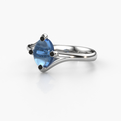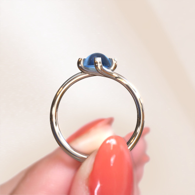 In this photo the platinum Nora ring is set with a cabochon blue topaz. Cabochon means a blue topaz is shaped first, not faceted, into a specific shape, such as a drop, heart or oval cabochon. Subsequently, it is polished until the gemstone has a orb shaped surface. A cabochon gemstone is a stunning, classy eye-catcher that matches perfectly with a contemporary as well as a vintage style. Our expert goldsmiths shape the graceful ring to perfection which makes it unique. The cabochon blue topaz is set so its unique qualities are strengthened. How do you like this trendy platinum ring? Simply customize this Nora ring, using our online tool. Subsequently, your personal graceful Nora ring will be made by hand by our goldsmiths. Precious metals and gemstones can be customized to your liking. Do you have specific preferences which are unavailable in our online tool? Please feel free to contact us. We will customize your personal trendy ring to your liking.After receiving your order, our goldsmiths will passionately start the creative process of making your ring in our own studio. Because we don't have a big stockpile, these costs will not be passed on to you. Our pricing is proof of that! We offer top quality jewels at lowest price, guaranteed.To make it easier for you, we offer a 30 day return policy. Check our terms and conditions.