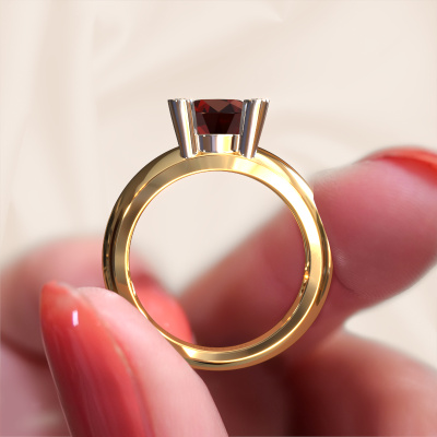 Are you looking for a special ring with an eye-catching single gemstone? How do you like this Tamara RND ring? This gold Tamara RND ring is set with a beautiful 8 mm round garnet. The garnet is carefully selected by our garnet suppliers. Subsequently, these gemstones are then set by our goldsmith according to ancient tradition. The ring will then be polished to perfection creating a unique ring with a stunning garnet. Created especially for you. The best part of this special ring is that you can customize it to your own liking. Your style, your choice, your ring. On top of that, your trendy gold ring will be made by hand with eco-friendly materials! Please feel free to easily customize the ring, using our online tool.By using a combination of the latest modern techniques, combined with ancient crafting, we can make all our rings in our own studio. Each jewel is made to order. This is advantageous because we can offer you a price you won't find anywhere else.To make it easier for you, we offer a 30 day return policy. Check our terms and conditions.