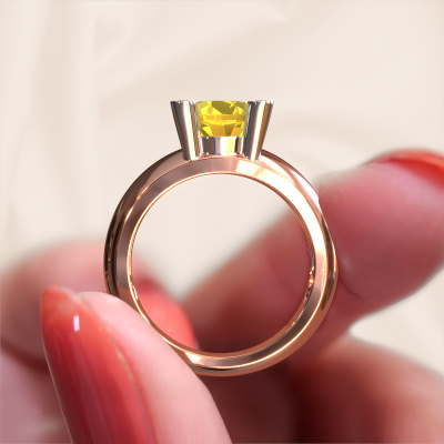 Are you looking for a special ring with an eye-catching single gemstone? How do you like this Tamara RND ring? This rose gold Tamara RND ring is set with a beautiful 8 mm round yellow sapphire. The yellow sapphire is carefully selected by our yellow sapphire suppliers. Subsequently, these gemstones are then set by our goldsmith according to ancient tradition. The ring will then be polished to perfection creating a unique ring with a stunning yellow sapphire. Created especially for you. The best part of this special ring is that you can customize it to your own liking. Your style, your choice, your ring. On top of that, your trendy rose gold ring will be made by hand with eco-friendly materials! Please feel free to easily customize the ring, using our online tool.By using a combination of the latest modern techniques, combined with ancient crafting, we can make all our rings in our own studio. Each jewel is made to order. This is advantageous because we can offer you a price you won't find anywhere else.To make it easier for you, we offer a 30 day return policy. Check our terms and conditions.