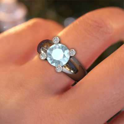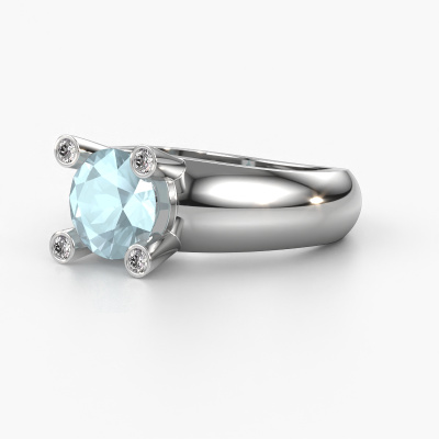 Are you looking for a special ring with an eye-catching single gemstone? How do you like this Tamara RND ring? This white gold Tamara RND ring is set with a beautiful 8 mm round aquamarine. The aquamarine is carefully selected by our aquamarine suppliers. Subsequently, these gemstones are then set by our goldsmith according to ancient tradition. The ring will then be polished to perfection creating a unique ring with a stunning aquamarine. Created especially for you. The best part of this special ring is that you can customize it to your own liking. Your style, your choice, your ring. On top of that, your trendy white gold ring will be made by hand with eco-friendly materials! Please feel free to easily customize the ring, using our online tool.By using a combination of the latest modern techniques, combined with ancient crafting, we can make all our rings in our own studio. Each jewel is made to order. This is advantageous because we can offer you a price you won't find anywhere else.To make it easier for you, we offer a 30 day return policy. Check our terms and conditions.