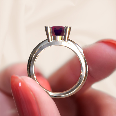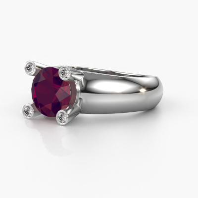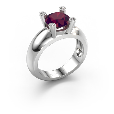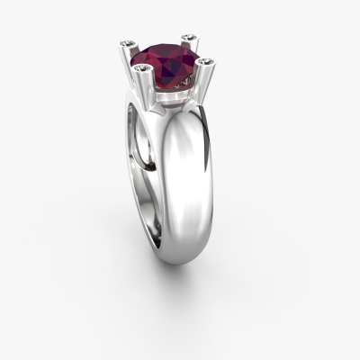 Are you looking for a special ring with an eye-catching single gemstone? How do you like this Tamara RND ring? This white gold Tamara RND ring is set with a beautiful 8 mm round rhodolite. The rhodolite is carefully selected by our rhodolite suppliers. Subsequently, these gemstones are then set by our goldsmith according to ancient tradition. The ring will then be polished to perfection creating a unique ring with a stunning rhodolite. Created especially for you. The best part of this special ring is that you can customize it to your own liking. Your style, your choice, your ring. On top of that, your trendy white gold ring will be made by hand with eco-friendly materials! Please feel free to easily customize the ring, using our online tool.By using a combination of the latest modern techniques, combined with ancient crafting, we can make all our rings in our own studio. Each jewel is made to order. This is advantageous because we can offer you a price you won't find anywhere else.To make it easier for you, we offer a 30 day return policy. Check our terms and conditions.