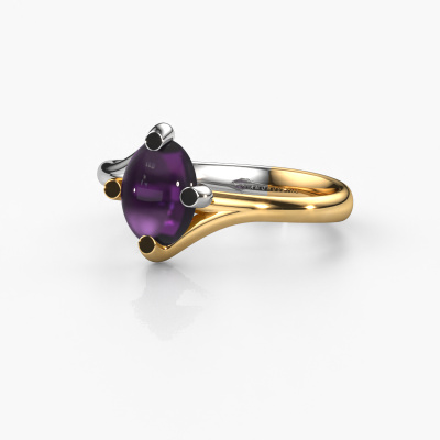 In this photo the white gold Nora ring is set with a cabochon amethyst. Cabochon means a amethyst is shaped first, not faceted, into a specific shape, such as a drop, heart or oval cabochon. Subsequently, it is polished until the gemstone has a orb shaped surface. A cabochon gemstone is a stunning, classy eye-catcher that matches perfectly with a contemporary as well as a vintage style. Our expert goldsmiths shape the graceful ring to perfection which makes it unique. The cabochon amethyst is set so its unique qualities are strengthened. How do you like this trendy white gold ring? Simply customize this Nora ring, using our online tool. Subsequently, your personal graceful Nora ring will be made by hand by our goldsmiths. Precious metals and gemstones can be customized to your liking. Do you have specific preferences which are unavailable in our online tool? Please feel free to contact us. We will customize your personal trendy ring to your liking.After receiving your order, our goldsmiths will passionately start the creative process of making your ring in our own studio. Because we don't have a big stockpile, these costs will not be passed on to you. Our pricing is proof of that! We offer top quality jewels at lowest price, guaranteed.To make it easier for you, we offer a 30 day return policy. Check our terms and conditions.