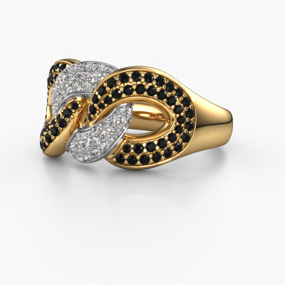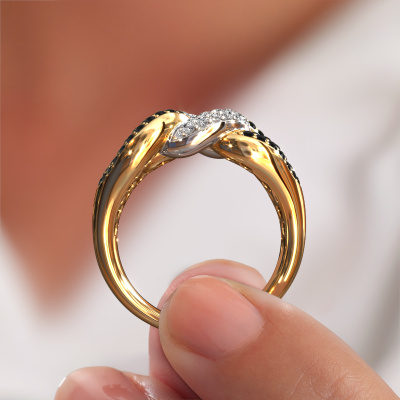This ring called Kylie 3 11mm is made of 14 Carat gold and is set with black diamond. Are you in the market for a unique gold ring with a modern twist? Then this ring might suit you. Simply customize to your or her liking. It suits the contemporary modern woman. This twist ring is set with beautiful black diamond. This has been carefully selected. Because your ring must be adorned with nothing but the most stunning gemstone. Our expert goldsmith will create your ring in our own studio, where the black diamond will be set with great care. The ring will then be polished to perfection to create a stunning ring. After receiving your order, our goldsmiths will passionately start the creative process of making your ring in our own studio. Because we don't have a big stockpile, these costs will not be passed on to you. Our pricing is proof of that! We offer top quality jewels at lowest price, guaranteed.
