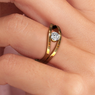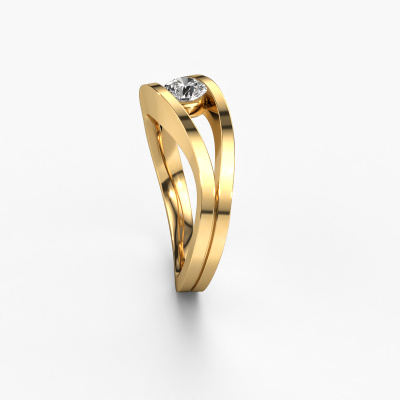 This ring called Sigrid 1 is made of 14 Carat gold and is set with diamond. Are you in the market for a unique gold ring with a modern twist? Then this ring might suit you. Simply customize to your or her liking. It suits the contemporary modern woman. This twist ring is set with beautiful diamond. This has been carefully selected. Because your ring must be adorned with nothing but the most stunning gemstone. Our expert goldsmith will create your ring in our own studio, where the diamond will be set with great care. The ring will then be polished to perfection to create a stunning ring. By using our modern techniques, we can design and customize the finest quality jewels with the utmost care for you. Our rings are always priced 30 percent lower than other jewellers. We make rings to order, so we don't have to maintain a large stock. If you have a certain budget, we are more than happy to advice you accordingly.Our team of talented, passionate designers add new ring designs to our online collection daily. Our objective in doing so, is to be able to offer you a wide variety of jewels. Please feel free to request a quote if you have specific wishes for your ring. We guarantee to make you an offer you can't refuse.To make it easier for you, we offer a 30 day return policy. Check our terms and conditions.