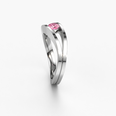 This ring called Sigrid 1 is made of platinum and is set with pink sapphire. Are you in the market for a unique platinum ring with a modern twist? Then this ring might suit you. Simply customize to your or her liking. It suits the contemporary modern woman. This twist ring is set with beautiful pink sapphire. This has been carefully selected. Because your ring must be adorned with nothing but the most stunning gemstone. Our expert goldsmith will create your ring in our own studio, where the pink sapphire will be set with great care. The ring will then be polished to perfection to create a stunning ring. By using our modern techniques, we can design and customize the finest quality jewels with the utmost care for you. Our rings are always priced 30 percent lower than other jewellers. We make rings to order, so we don't have to maintain a large stock. If you have a certain budget, we are more than happy to advice you accordingly.Our team of talented, passionate designers add new ring designs to our online collection daily. Our objective in doing so, is to be able to offer you a wide variety of jewels. Please feel free to request a quote if you have specific wishes for your ring. We guarantee to make you an offer you can't refuse.To make it easier for you, we offer a 30 day return policy. Check our terms and conditions.