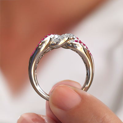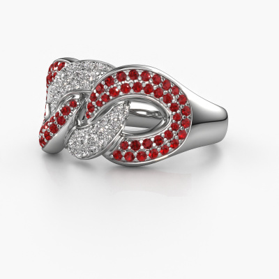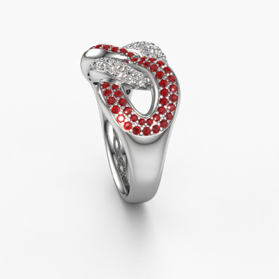 This ring called Kylie 3 11mm is made of 14 Carat white gold and is set with ruby. Are you in the market for a unique white gold ring with a modern twist? Then this ring might suit you. Simply customize to your or her liking. It suits the contemporary modern woman. This twist ring is set with beautiful ruby. This has been carefully selected. Because your ring must be adorned with nothing but the most stunning gemstone. Our expert goldsmith will create your ring in our own studio, where the ruby will be set with great care. The ring will then be polished to perfection to create a stunning ring. After receiving your order, our goldsmiths will passionately start the creative process of making your ring in our own studio. Because we don't have a big stockpile, these costs will not be passed on to you. Our pricing is proof of that! We offer top quality jewels at lowest price, guaranteed.