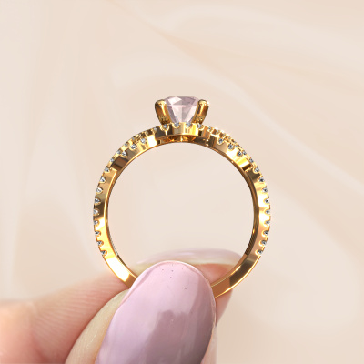 How would you describe your own style? Are you looking for something uniquely different? This graceful gold Jeni ring is astonishing! Simply customize to your or her own liking. This ring is set with morganite champagne. These morganite champagne have been carefully selected because your ring must be adorned with nothing but the most beautiful gemstone. Wouldn't you agree? Our expert goldsmith will create your ring in our own crafting studios, where the morganite champagne will be set with care. The ring will then be polished to perfection to give it that extra sparkle. It's a perfect ring for a woman of excellent taste!The best part of this graceful ring is that you can customize it to your own liking. Your style, your choice, your ring. On top of that, your vintage gold ring will be made by hand with eco-friendly materials! Please feel free to easily customize the ring, using our online tool.By using a combination of the latest modern techniques, combined with ancient crafting, we can make all our rings in our own studio. Each jewel is made to order. This is advantageous because we can offer you a price you won't find anywhere else.To make it easier for you, we offer a 30 day return policy. Check our terms and conditions.