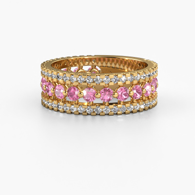 How would you describe your own style? Are you looking for something uniquely different? This beautiful gold Elizbeth 2 ring is astonishing! Simply customize to your or her own liking. This ring is set with pink sapphire. These pink sapphire have been carefully selected because your ring must be adorned with nothing but the most beautiful gemstone. Wouldn't you agree? Our expert goldsmith will create your ring in our own crafting studios, where the pink sapphire will be set with care. The ring will then be polished to perfection to give it that extra sparkle. It's a perfect ring for a woman of excellent taste!The best part of this beautiful ring is that you can customize it to your own liking. Your style, your choice, your ring. On top of that, your vintage gold ring will be made by hand with eco-friendly materials! Please feel free to easily customize the ring, using our online tool.Because we design and deliver our own rings, we can offer you a ring at a price you won't find anywhere else. A ring is made to order, which helps prevent excess supplies, so we can make you a great price offer. We understand it feels risky, buying your ring online, but we will gladly assist in the designing process, taking your budget into consideration.To make it easier for you, we offer a 30 day return policy. Check our terms and conditions.