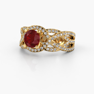 How would you describe your own style? Are you looking for something uniquely different? This graceful gold Jeni ring is astonishing! Simply customize to your or her own liking. This ring is set with ruby. These ruby have been carefully selected because your ring must be adorned with nothing but the most beautiful gemstone. Wouldn't you agree? Our expert goldsmith will create your ring in our own crafting studios, where the ruby will be set with care. The ring will then be polished to perfection to give it that extra sparkle. It's a perfect ring for a woman of excellent taste!The best part of this graceful ring is that you can customize it to your own liking. Your style, your choice, your ring. On top of that, your vintage gold ring will be made by hand with eco-friendly materials! Please feel free to easily customize the ring, using our online tool.By using a combination of the latest modern techniques, combined with ancient crafting, we can make all our rings in our own studio. Each jewel is made to order. This is advantageous because we can offer you a price you won't find anywhere else.To make it easier for you, we offer a 30 day return policy. Check our terms and conditions.