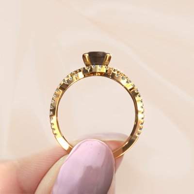 How would you describe your own style? Are you looking for something uniquely different? This graceful gold Jeni ring is astonishing! Simply customize to your or her own liking. This ring is set with smokey quartz. These smokey quartz have been carefully selected because your ring must be adorned with nothing but the most beautiful gemstone. Wouldn't you agree? Our expert goldsmith will create your ring in our own crafting studios, where the smokey quartz will be set with care. The ring will then be polished to perfection to give it that extra sparkle. It's a perfect ring for a woman of excellent taste!The best part of this graceful ring is that you can customize it to your own liking. Your style, your choice, your ring. On top of that, your vintage gold ring will be made by hand with eco-friendly materials! Please feel free to easily customize the ring, using our online tool.By using a combination of the latest modern techniques, combined with ancient crafting, we can make all our rings in our own studio. Each jewel is made to order. This is advantageous because we can offer you a price you won't find anywhere else.To make it easier for you, we offer a 30 day return policy. Check our terms and conditions.