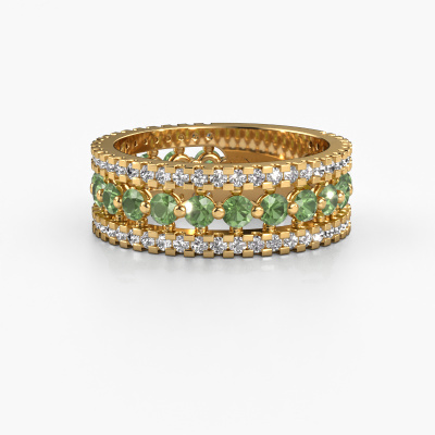 How would you describe your own style? Are you looking for something uniquely different? This beautiful gold Elizbeth 2 ring is astonishing! Simply customize to your or her own liking. This ring is set with tourmaline green. These tourmaline green have been carefully selected because your ring must be adorned with nothing but the most beautiful gemstone. Wouldn't you agree? Our expert goldsmith will create your ring in our own crafting studios, where the tourmaline green will be set with care. The ring will then be polished to perfection to give it that extra sparkle. It's a perfect ring for a woman of excellent taste!The best part of this beautiful ring is that you can customize it to your own liking. Your style, your choice, your ring. On top of that, your vintage gold ring will be made by hand with eco-friendly materials! Please feel free to easily customize the ring, using our online tool.Because we design and deliver our own rings, we can offer you a ring at a price you won't find anywhere else. A ring is made to order, which helps prevent excess supplies, so we can make you a great price offer. We understand it feels risky, buying your ring online, but we will gladly assist in the designing process, taking your budget into consideration.To make it easier for you, we offer a 30 day return policy. Check our terms and conditions.