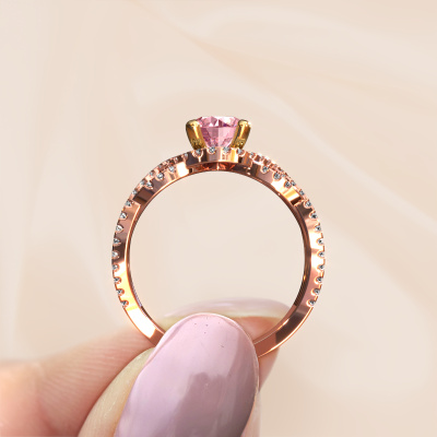How would you describe your own style? Are you looking for something uniquely different? This graceful rose gold Jeni ring is astonishing! Simply customize to your or her own liking. This ring is set with pink lab grown diamond. These pink lab grown diamonds have been carefully selected because your ring must be adorned with nothing but the most beautiful gemstone. Wouldn't you agree? Our expert goldsmith will create your ring in our own crafting studios, where the pink lab grown diamond will be set with care. The ring will then be polished to perfection to give it that extra sparkle. It's a perfect ring for a woman of excellent taste!The best part of this graceful ring is that you can customize it to your own liking. Your style, your choice, your ring. On top of that, your vintage rose gold ring will be made by hand with eco-friendly materials! Please feel free to easily customize the ring, using our online tool.By using a combination of the latest modern techniques, combined with ancient crafting, we can make all our rings in our own studio. Each jewel is made to order. This is advantageous because we can offer you a price you won't find anywhere else.To make it easier for you, we offer a 30 day return policy. Check our terms and conditions.