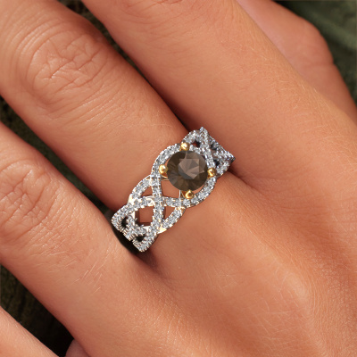 How would you describe your own style? Are you looking for something uniquely different? This graceful white gold Jeni ring is astonishing! Simply customize to your or her own liking. This ring is set with smokey quartz. These smokey quartz have been carefully selected because your ring must be adorned with nothing but the most beautiful gemstone. Wouldn't you agree? Our expert goldsmith will create your ring in our own crafting studios, where the smokey quartz will be set with care. The ring will then be polished to perfection to give it that extra sparkle. It's a perfect ring for a woman of excellent taste!The best part of this graceful ring is that you can customize it to your own liking. Your style, your choice, your ring. On top of that, your vintage white gold ring will be made by hand with eco-friendly materials! Please feel free to easily customize the ring, using our online tool.By using a combination of the latest modern techniques, combined with ancient crafting, we can make all our rings in our own studio. Each jewel is made to order. This is advantageous because we can offer you a price you won't find anywhere else.To make it easier for you, we offer a 30 day return policy. Check our terms and conditions.