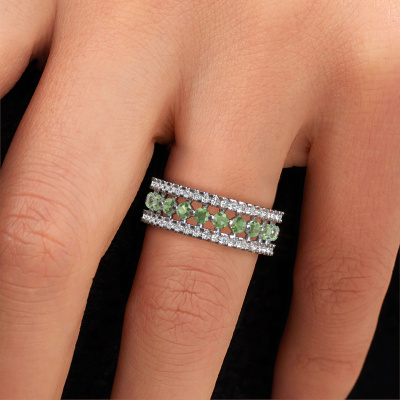 How would you describe your own style? Are you looking for something uniquely different? This beautiful white gold Elizbeth 2 ring is astonishing! Simply customize to your or her own liking. This ring is set with tourmaline green. These tourmaline green have been carefully selected because your ring must be adorned with nothing but the most beautiful gemstone. Wouldn't you agree? Our expert goldsmith will create your ring in our own crafting studios, where the tourmaline green will be set with care. The ring will then be polished to perfection to give it that extra sparkle. It's a perfect ring for a woman of excellent taste!The best part of this beautiful ring is that you can customize it to your own liking. Your style, your choice, your ring. On top of that, your vintage white gold ring will be made by hand with eco-friendly materials! Please feel free to easily customize the ring, using our online tool.Because we design and deliver our own rings, we can offer you a ring at a price you won't find anywhere else. A ring is made to order, which helps prevent excess supplies, so we can make you a great price offer. We understand it feels risky, buying your ring online, but we will gladly assist in the designing process, taking your budget into consideration.To make it easier for you, we offer a 30 day return policy. Check our terms and conditions.