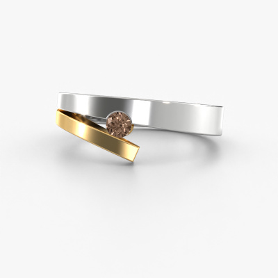 This ring is called Rosario. It is made of 14 Carat white gold and is set with 0.10 crt brown diamond. Are you looking for a unique white gold ring with a modern appearance? Then this is the ring for you. Simply customize to your or her liking. Perfect for a modern, contemporary woman! This edgy ring is adorned with stunning brown diamond. It was carefully selected because your ring must be adorned with nothing but the most beautiful gemstones. Our expert goldsmith will create your ring in our own studio, where the brown diamond will be set with great care. The ring will then be polished to perfection to create a beautiful ring. Are you on a budget? Please feel free to contact us, so we can go discuss your options. We offer our rings at guaranteed best price, because we make them to order. You won't find such a price anywhere else!