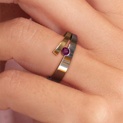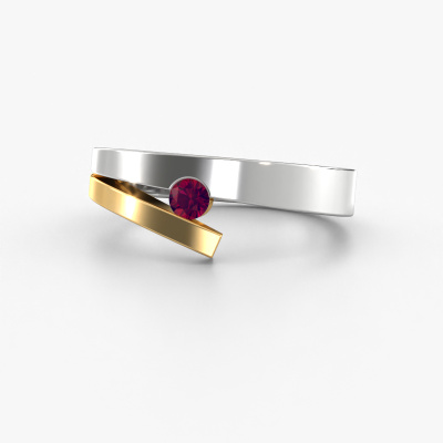 This ring is called Rosario. It is made of 14 Carat white gold and is set with 3 mm rhodolite. Are you looking for a unique white gold ring with a modern appearance? Then this is the ring for you. Simply customize to your or her liking. Perfect for a modern, contemporary woman! This edgy ring is adorned with stunning rhodolite. It was carefully selected because your ring must be adorned with nothing but the most beautiful gemstones. Our expert goldsmith will create your ring in our own studio, where the rhodolite will be set with great care. The ring will then be polished to perfection to create a beautiful ring. Are you on a budget? Please feel free to contact us, so we can go discuss your options. We offer our rings at guaranteed best price, because we make them to order. You won't find such a price anywhere else!