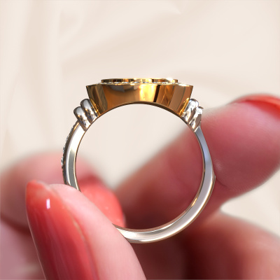 This white gold women´s signet ring is a true work of art! This is our special Cristina signet ring and it is set with a oval shape bloodstone. In our crafting studio, we use a combination of the latest techniques and ancient traditional craftsmanship, so we are able to create a detailed perfect signet ring. Our expert goldsmiths are fascinated by signet rings. The signet ring can be engraved with initials or a family weapon. Signet rings with family weapons can be handed down from generation to generation and that usually is the case. On top of that, a signet ring is a beautiful, classy piece of jewellery which is trending once more. More than one reason to start or extend the tradition. Please browse our online database for more options on engravings. You can find the departments of our education centre at the bottom of this page. As soon as you finished designing your Cristina signet ring with our online tool, our goldsmiths will start their creative process of making your ring. This will be done with passion and care, according ancient crafting. On top of that, our jewels are made of eco-friendly materials. Simply customize online with our online tool, if you want any changes made. If you want specific changes made to your Cristina signet ring, that are unavailable in our online tool, please feel free to contact our expert designers.After receiving your order, our goldsmiths will passionately start the creative process of making your ring in our own studio. Because we don't have a big stockpile, these costs will not be passed on to you. Our pricing is proof of that! We offer top quality jewels at lowest price, guaranteed.To make it easier for you, we offer a 30 day return policy. Check our terms and conditions.