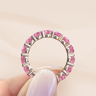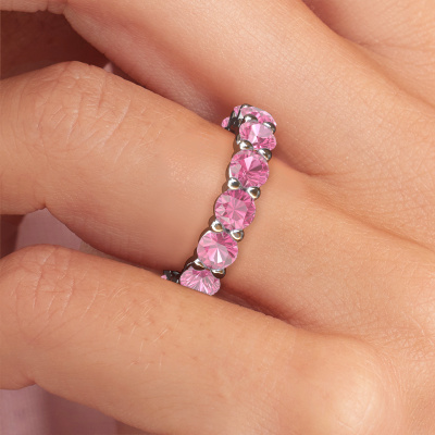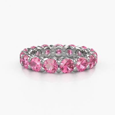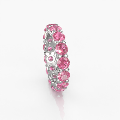 This exclusive white gold Heddy rnd 4.2 ring is a true work of art! This ring is made of 14 Carat white gold and is set with 4.2 mm round pink sapphire. The smallest ornaments are crafted by our goldsmith with a lot of patience and great passion. In order to create this ring with great precision, this craft requires a keen eye and a skilful hand. A challenge which ignites a fire in our expert goldsmiths. The exquisite pink sapphire are set in a way that their unique qualities are strengthened. This gives the ring an even more glamorous appearance. The ring is unique by itself though, because of the natural birthstones we selected especially for this Heddy rnd 4.2 ring. And by choosing the precious metal yourself, you create a unique ring. The best part of this eternity ring is that you can customize it to your own liking. Your style, your choice, your ring. On top of that, your exclusive white gold ring will be made by hand with eco-friendly materials! Please feel free to easily customize the ring, using our online tool.After receiving your order, our goldsmiths will start the creative process of making your Heddy rnd 4.2 ring. We don't keep stock. This is advantageous because these costs will not be passed on to you. Therefore, we can offer jewellery at exceptionally low prices.To make it easier for you, we offer a 30 day return policy. Check our terms and conditions.