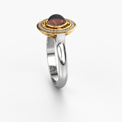 In this photo the white gold Salima ring is set with a cabochon smokey quartz. Cabochon means a smokey quartz is shaped first, not faceted, into a specific shape, such as a drop, heart or round cabochon. Subsequently, it is polished until the gemstone has a orb shaped surface. A cabochon gemstone is a stunning, classy eye-catcher that matches perfectly with a contemporary as well as a vintage style. Our expert goldsmiths shape the special ring to perfection which makes it unique. The cabochon smokey quartz is set so its unique qualities are strengthened. How do you like this design white gold ring? Simply customize this Salima ring, using our online tool. Subsequently, your personal special Salima ring will be made by hand by our goldsmiths. Precious metals and gemstones can be customized to your liking. Do you have specific preferences which are unavailable in our online tool? Please feel free to contact us. We will customize your personal design ring to your liking.After receiving your order, our goldsmiths will passionately start the creative process of making your ring in our own studio. Because we don't have a big stockpile, these costs will not be passed on to you. Our pricing is proof of that! We offer top quality jewels at lowest price, guaranteed.To make it easier for you, we offer a 30 day return policy. Check our terms and conditions.