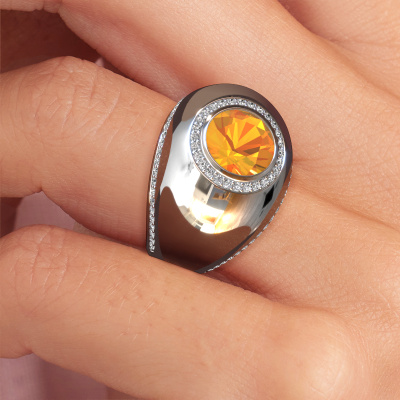 This is a stunning birthstones white gold Roxann ring. It is set with citrin. A designer ring, fit for classy women. The ring is designed by our own expert goldsmiths. In our artisan studio, we use a combination of the latest techniques and ancient