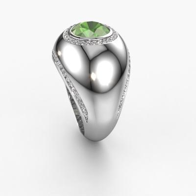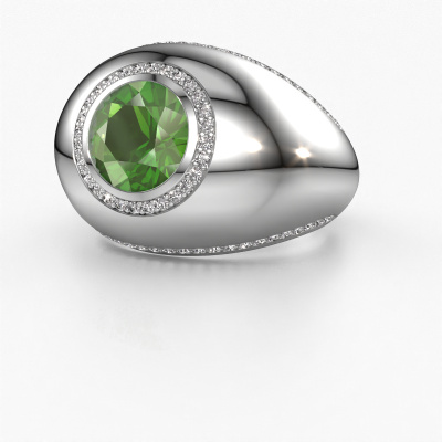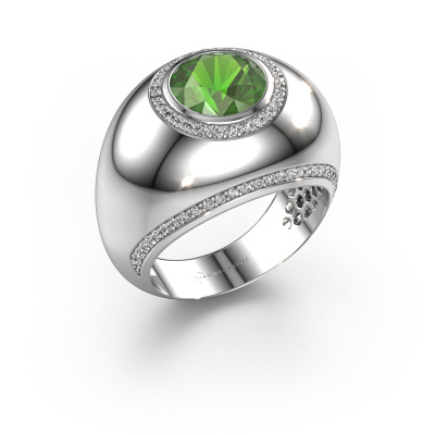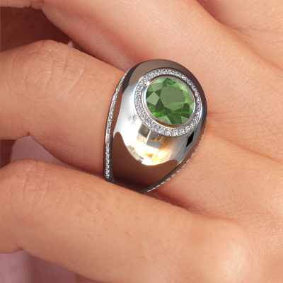 This is a stunning birthstones white gold Roxann ring. It is set with tourmaline green. A designer ring, fit for classy women. The ring is designed by our own expert goldsmiths. In our artisan studio, we use a combination of the latest techniques