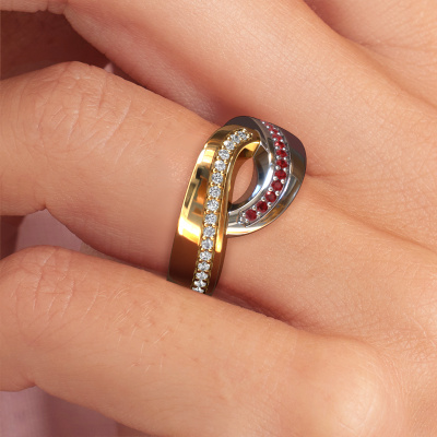 This exclusive white gold Sharita ring is a true work of art! This ring is made of 14 Carat white gold and is set with 1.2 mm round ruby. The smallest ornaments are crafted by our goldsmith with a lot of patience and great passion. In order to create this ring with great precision, this craft requires a keen eye and a skilful hand. A challenge which ignites a fire in our expert goldsmiths. The exquisite ruby are set in a way that their unique qualities are strengthened. This gives the ring an even more glamorous appearance. The ring is unique by itself though, because of the natural birthstones we selected especially for this Sharita ring. And by choosing the precious metal yourself, you create a unique ring. Our goldsmiths passionately create your customized ring to your liking with the utmost care. The white gold ring, as shown here, can be customized using our online tool. Feel free to ask our jewel designers for assistance if you want changes made which are unavailable in our online tool. We are happy to answer your questions.After receiving your order, our goldsmiths will start the creative process of making your Sharita ring. We don't keep stock. This is advantageous because these costs will not be passed on to you. Therefore, we can offer jewellery at exceptionally low prices.To make it easier for you, we offer a 30 day return policy. Check our terms and conditions.