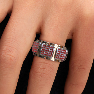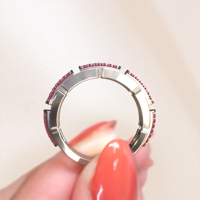 This exclusive white gold Laura ring is a true work of art! This ring is made of 14 Carat white gold and is set with 1 mm round ruby. The smallest ornaments are crafted by our goldsmith with a lot of patience and great passion. In order to create this ring with great precision, this craft requires a keen eye and a skilful hand. A challenge which ignites a fire in our expert goldsmiths. The exquisite ruby are set in a way that their unique qualities are strengthened. This gives the ring an even more glamorous appearance. The ring is unique by itself though, because of the natural birthstones we selected especially for this Laura ring. And by choosing the precious metal yourself, you create a unique ring. The best part of this pavé set ring is that you can customize it to your own liking. Your style, your choice, your ring. On top of that, your exclusive white gold ring will be made by hand with eco-friendly materials! Please feel free to easily customize the ring, using our online tool.By using our modern techniques, we can design and customize the finest quality jewels with the utmost care for you. Our rings are always priced 30 percent lower than other jewellers. We make rings to order, so we don't have to maintain a large stock. If you have a certain budget, we are more than happy to advice you accordingly.To make it easier for you, we offer a 30 day return policy. Check our terms and conditions.