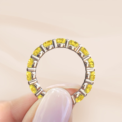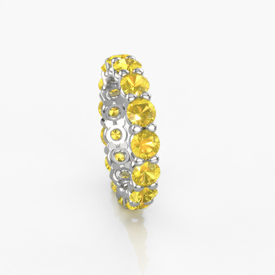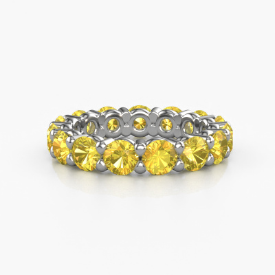 This exclusive white gold Heddy rnd 4.2 ring is a true work of art! This ring is made of 14 Carat white gold and is set with 4.2 mm round yellow sapphire. The smallest ornaments are crafted by our goldsmith with a lot of patience and great passion. In order to create this ring with great precision, this craft requires a keen eye and a skilful hand. A challenge which ignites a fire in our expert goldsmiths. The exquisite yellow sapphire are set in a way that their unique qualities are strengthened. This gives the ring an even more glamorous appearance. The ring is unique by itself though, because of the natural birthstones we selected especially for this Heddy rnd 4.2 ring. And by choosing the precious metal yourself, you create a unique ring. The best part of this eternity ring is that you can customize it to your own liking. Your style, your choice, your ring. On top of that, your exclusive white gold ring will be made by hand with eco-friendly materials! Please feel free to easily customize the ring, using our online tool.After receiving your order, our goldsmiths will start the creative process of making your Heddy rnd 4.2 ring. We don't keep stock. This is advantageous because these costs will not be passed on to you. Therefore, we can offer jewellery at exceptionally low prices.To make it easier for you, we offer a 30 day return policy. Check our terms and conditions.