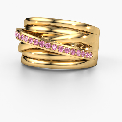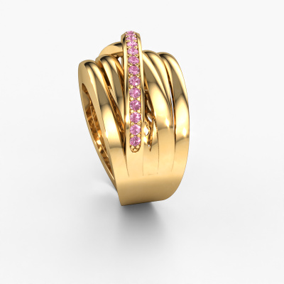 How would you describe your own style? Are you looking for something uniquely different? This wide gold Clair 1 ring is astonishing! Simply customize to your or her own liking. This ring is set with pink sapphire. These pink sapphire have been carefully selected because your ring must be adorned with nothing but the most beautiful gemstone. Wouldn't you agree? Our expert goldsmith will create your ring in our own crafting studios, where the pink sapphire will be set with care. The ring will then be polished to perfection to give it that extra sparkle. It's a perfect ring for a woman of excellent taste!The best part of this wide ring is that you can customize it to your own liking. Your style, your choice, your ring. On top of that, your fantasy gold ring will be made by hand with eco-friendly materials! Please feel free to easily customize the ring, using our online tool.By using a combination of the latest modern techniques, combined with ancient crafting, we can make all our rings in our own studio. Each jewel is made to order. This is advantageous because we can offer you a price you won't find anywhere else.To make it easier for you, we offer a 30 day return policy. Check our terms and conditions.