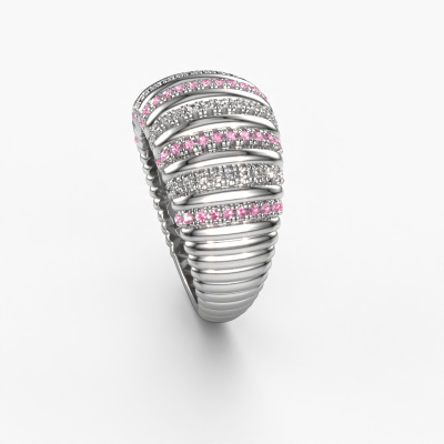 This is a stunning wide white gold Dawn 12mm ring. It is set with pink sapphire. A designer ring, fit for classy women. The ring is designed by our own expert goldsmiths. In our artisan studio, we use a combination of the latest techniques and ancient traditional craftsmanship, so we are able to create a perfectly designed ring. Our expert goldsmiths strive for perfection so they won't stop until a perfect ring, a true work of art, is created. A unique ring which matches your own style. The wide Dawn 12mm ring, as shown here, can be customized to your liking. Our online tool offers many different options but please feel free to contact us if you want changes made to your Dawn 12mm ring, which are unavailable in our online tool.By using a combination of the latest modern techniques, combined with ancient crafting, we can make all our rings in our own studio. Each jewel is made to order. This is advantageous because we can offer you a price you won't find anywhere else.To make it easier for you, we offer a 30 day return policy. Check our terms and conditions.
