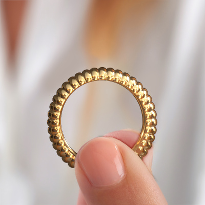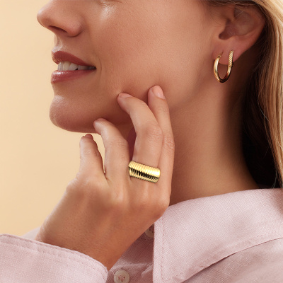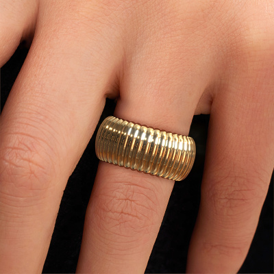 What a wide ring indeed! This ring is called Dille 2. A classy wide ring, that suits the contemporary, fashionable woman. This ring is proof of our new method of crafting. We came up with a process in our own studio in which the old as well as new ways of crafting are unified in perfect harmony. We make a detailed 3D design of the intended ring. Then our expert goldsmith crafts your ring into perfection. A unique ring, styled to your liking. As soon as you finished designing your Dille 2 ring with our online tool, our goldsmiths will start their creative process of making your ring. This will be done with passion and care, according ancient crafting. On top of that, our jewels are made of eco-friendly materials. Simply customize online with our online tool, if you want any changes made. If you want specific changes made to your Dille 2 ring, that are unavailable in our online tool, please feel free to contact our expert designers.After receiving your order, our goldsmiths will start the creative process of making your Dille 2 ring. We don't keep stock. This is advantageous because these costs will not be passed on to you. Therefore, we can offer jewellery at exceptionally low prices.To make it easier for you, we offer a 30 day return policy. Check our terms and conditions.