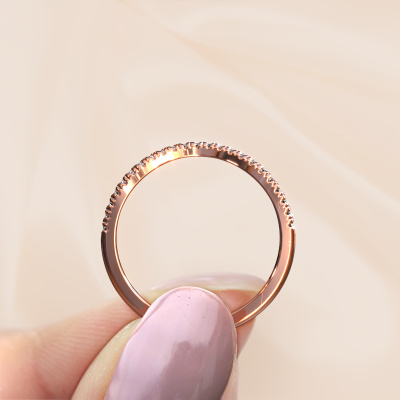 This SRH0329C10H4 stackable ring in 14 Carat rose gold is set with diamond. This rose gold stacked SRH0329C10H4 ring is the perfect addition to your ring collection! As the name suggests, it is a ring which can be combined on one finger with another ring. It gives you the opportunity to create your own style. A stacked ring usually represents a certain memory of someone special or a memorable moment. It is common to combine a stacked ring, representing an anniversary, with a wedding ring. But this twist ring, combined with your other rings, also makes a classy fashion item. The best part of this twist stackable ring is that you can customize it to your own liking. Your style, your choice, your stackable ring. On top of that, your modern rose gold stackable ring will be made by hand with eco-friendly materials! Please feel free to easily customize the ring, using our online tool.Are you on a budget? Please feel free to contact us, so we can go discuss your options. We offer our rings at guaranteed best price, because we make them to order. You won't find such a price anywhere else!To make it easier for you, we offer a 30 day return policy. Check our terms and conditions.