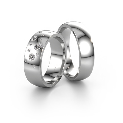 How would you describe your style? Are you looking for something slightly different? These special shiny gold WH0141LM26BP wedding rings are remarkable rings which can be customized to your or her liking. A wedding band is a symbol of your eternal love. So, what better way to symbolize this than to customize them entirely to your liking? This fantasy women's wedding ring is set with diamond. These diamonds are carefully selected because your wedding ring must be adorned with nothing but the most beautiful gemstones. Wouldn't you agree? The wedding band for men has a width of ±0.24 in, the women's ring has a ±0.28 in width. Simply customize your gemstones and colours with our online tool. Our jewel designers will make a 3D drawing of your design, so you can see the result. Our goldsmiths will subsequently make your wedding rings by hand, according ancient craftsmanship. Our goal is to make the wedding rings you have in mind. Unique wedding rings to match your style completely!Because we design our wedding rings ourselves, and deliver it directly to you, we can offer you wedding rings at a price you won't find anywhere else. Our rings are made to order, which helps prevent excess supplies, so we can make you a great price offer.To make it easier for you, we offer a 30 day return policy. Check our terms and conditions.