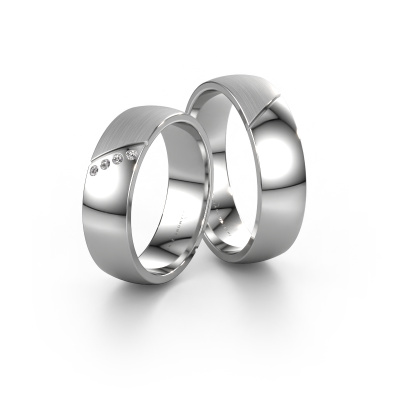 This WH1201LM26A4SPM set of white gold wedding rings consists of wide wedding rings that will surely make you shine on your wedding day. A beautiful symbol of your unique relationship. And that is why these traditional wedding rings can be customized to your own liking. The women's wedding ring has a width of ±0.24 in and this specific ring is set with an exquisite diamond. We select the diamond with great care because your wedding rings have to be perfect in every way. The men's ring has a width of ±0.24 in. After designing your wedding rings, our jewel designer will start working on them. He will make a graphic 3D design of your wedding rings. This can also be used to make a dummy ring. Simply order a dummy ring and see for yourself how your ring will turn out. Subsequently, our expert goldsmith will create your wedding rings in our own artisan studio. We use eco-friendly gold, so you get wedding rings, we are proud of, which looks good inside and out. You can also send us your own gold. Because we create your wedding rings by hand, we can use your own gold. Our goal is to create exquisite sparkling wedding rings just as envisioned it!Because we design our wedding rings ourselves, and deliver it directly to you, we can offer you wedding rings at a price you won't find anywhere else. Our rings are made to order, which helps prevent excess supplies, so we can make you a great price offer.To make it easier for you, we offer a 30 day return policy. Check our terms and conditions.