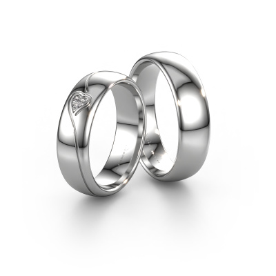 How would you describe your style? Are you looking for something slightly different? These symbolic shiny white gold WH0168LM36AP wedding rings are remarkable rings which can be customized to your or her liking. A wedding band is a symbol of your eternal love. So, what better way to symbolize this than to customize them entirely to your liking? This fantasy women's wedding ring is set with diamond. These diamonds are carefully selected because your wedding ring must be adorned with nothing but the most beautiful gemstones. Wouldn't you agree? The wedding band for men has a width of ±0.24 in, the women's ring has a ±0.24 in width. The jewel designer, member of a specialized team, will make a graphic 3D design of your wedding rings. If it pleases you, you can also order dummy rings so you can try it on and see your wedding rings before creation. Subsequently, our goldsmith will create your unique wedding rings with great care in our own crafting studio. A meticulous job, because both creating as well as finishing your rings requires a keen eye. And that is what makes our craft special. Your unique wedding rings are the result of true passionate craftsmanship!After receiving your order, our goldsmiths will start the creative process of making your wedding rings in our own crafting studio. We don't keep stock. This is advantageous because these costs will not be passed on to you. Therefore, we can offer the finest quality jewellery at exceptionally low prices.To make it easier for you, we offer a 30 day return policy. Check our terms and conditions.