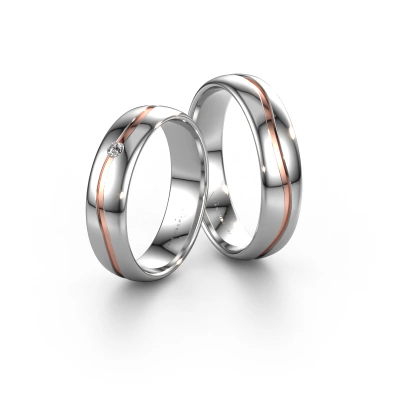 The combination of these two precious metals symbolizes the unity between two loved ones perfectly, don´t you agree? That is what makes this set of wavy details WH0905LM35XP wedding rings perfect. The wedding ring is a symbol of your love, meant to be worn a lifetime! This set of wedding rings consists of unique two-tone wedding rings, that you can compile yourself in various precious metal combinations. This one has the combination of 14 Carat white gold with rose gold and they have a shiny finish. You will receive beautiful wedding rings, according to your own design, which our artisan goldsmith crafts in our own studio. The wedding band for men has a width of ±0.20 in, the women's ring has a width of ±0.20 in and this specific ring as shown here is set with diamond 0.03 crt. Because your wedding day must be adorned with nothing but the most beautiful gemstone. Wouldn't you agree?After ordering your wedding rings, our goldsmith will start creating your wedding rings immediately. Did you know we use the latest modern techniques, combined with ancient craftsmanship? This helps to create a 3D design of your jewels. You can order a dummy ring, if you please. This way you can check if the wedding rings meet your standard. Then, our goldsmith, who strives for perfection, will create your wedding rings in our own artisan studio completely by hand. We feel passionate creating a unique ring each time. One which is finished to perfection. In the end, you get wedding rings which matches your wishes.Because we design our wedding rings ourselves, and deliver it directly to you, we can offer you wedding rings at a price you won't find anywhere else. Our rings are made to order, which helps prevent excess supplies, so we can make you a great price offer.To make it easier for you, we offer a 30 day return policy. Check our terms and conditions.