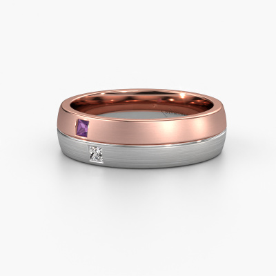 A unique two-tone rose gold ladies wedding ring, designed by you, and then artfully crafted by our goldsmith in our own artisan studio! A beautiful symbol, reflecting your love, which you carry with you for a lifetime! Each ring we offer is artfully forged by hand in our own crafting studio. This makes it possible for us to create you a ring which is customized to your liking, completely mat your style. This modern WH0250L26BM wedding ring is set with amethyst, is ±0.24 in wide and has a matte finish. After designing your ring, our jewel designer will start working on it. He will make a graphic 3D design of your wedding ring. This can also be used to make a dummy ring. Simply order a dummy ring and see for yourself how your ring will turn out. Subsequently, our expert goldsmith will create your ring in our own artisan studio. We use eco-friendly gold, so you get a ring, we are proud of, which looks good inside and out. You can also send us your own gold. Because we create your ring by hand, we can use your own gold. Our goal is to create an exquisite sparkling wedding ring just as envisioned it!By the way, you can be inspired by this wedding ring and have it further adjusted to your taste. Do you prefer a smaller band or a wider one? Do you prefer a shiny ring or a matte one? Anything is possible. Also, if you have an idea of your own for extraordinary wedding rings, or if you have seen a beautiful set somewhere else that you really like and would like to have adjusted to your personal taste: no problem! don't hesitate to contact us. Our designers will gladly discuss your possibilities with you!Because we design our wedding rings ourselves, and deliver it directly to you, we can offer you wedding rings at a price you won't find anywhere else. Our rings are made to order, which helps prevent excess supplies, so we can make you a great price offer.To make it easier for you, we offer a 30 day return policy. Check our terms and conditions.