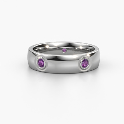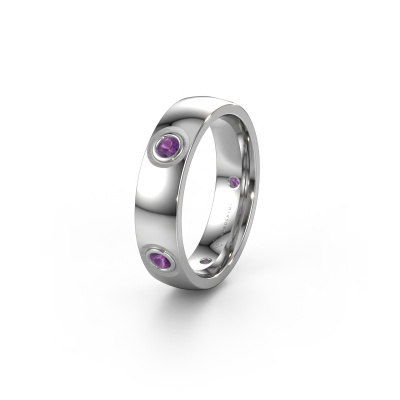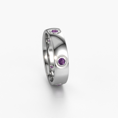 This exclusive ladies wedding ring is a melting pot of ancient craftsmanship, love, passion and the latest techniques. It requires a keen eye, patience and a skilful hand to create this platinum wedding ring to perfection. And perfection is what our goldsmiths strive for! This way, you create an exclusive ring, which is customized to your liking and made by hand in our own artisan studio. This exclusive WH0139L25BP wedding ring is set with amethyst 2.5 mm, is ±0.20 in wide and has a mat/shiny finish. After designing your ring, our jewel designer will start working on it. He will make a graphic 3D design of your wedding ring. This can also be used to make a dummy ring. Simply order a dummy ring and see for yourself how your ring will turn out. Subsequently, our expert goldsmith will create your ring in our own artisan studio. We use eco-friendly gold, so you get a ring, we are proud of, which looks good inside and out. You can also send us your own gold. Because we create your ring by hand, we can use your own gold. Our goal is to create an exquisite sparkling wedding ring just as envisioned it!Do you have specific wishes regarding your wedding ring, but are you having difficulties finding the design on our website? The be sure to contact our designers! For instance, we can make the band smaller or wider. Do you prefer a matte finish? We can do that! Engravings are a great way of personalizing your rings, and applicable on most designs. Or, if you have an idea of your own for your extraordinary wedding rings, contact us! Our designers are up for the challenge of designing the ring of your dreams!Because we design and deliver our own wedding rings, we can offer you wedding rings at a price you won't find anywhere else. A ring is made to order, which helps prevent excess supplies, so we can make you a great price offer.To make it easier for you, we offer a 30 day return policy. Check our terms and conditions.