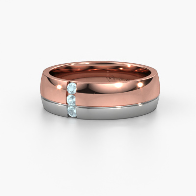 A unique two-tone rose gold ladies wedding ring, designed by you, and then artfully crafted by our goldsmith in our own artisan studio! A beautiful symbol, reflecting your love, which you carry with you for a lifetime! Each ring we offer is artfully forged by hand in our own crafting studio. This makes it possible for us to create you a ring which is customized to your liking, completely shiny your style. This modern WH0223L56A wedding ring is set with aquamarine, is ±0.24 in wide and has a shiny finish. The jewel designer, member of a specialized team, will make a graphic 3D design of your wedding ring. If it pleases you, you can also order a ring dummy so you can try it on and see your ring before creation. Subsequently, our goldsmith will create your unique wedding ring with great care in our own crafting studio. A meticulous job, because both creating as well as finishing your ring requires a keen eye. And that is what makes our craft special. Your unique wedding ring is the result of true passionate craftsmanship!By the way, you can be inspired by this wedding ring and have it further adjusted to your taste. Do you prefer a smaller band or a wider one? Do you prefer a shiny ring or a matte one? Anything is possible. Also, if you have an idea of your own for extraordinary wedding rings, or if you have seen a beautiful set somewhere else that you really like and would like to have adjusted to your personal taste: no problem! don't hesitate to contact us. Our designers will gladly discuss your possibilities with you!After receiving your order, our goldsmiths will start the creative process of making your wedding rings. We don't keep stock. This is advantageous because these costs will not be passed on to you. Therefore, our quality wedding rings are always priced 30 percent lower than those of other jewellers.To make it easier for you, we offer a 30 day return policy. Check our terms and conditions.