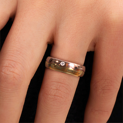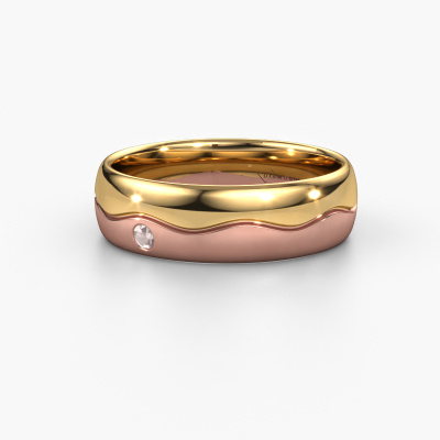 A unique ladies wedding ring, especially designed by our own jewel designers. An unusual ring that matches each style. This modern wedding ring WH0701L36AP is made by hand by our goldsmiths in our own crafting studio. By using a combination of the most modern techniques and ancient craftsmanship, your WH0701L36AP ring is created to perfection. This ladies wedding ring has an ±0.24 in width and has a shiny finish. Here, the modern gold wedding ring is shown in the combination gold with rose gold. An exquisite wedding ring, a celebration of your wedding day!