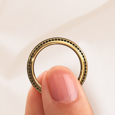 This luxury ladies wedding ring is a melting pot of ancient craftsmanship, love, passion and the latest techniques. It requires a keen eye, patience and a skilful hand to create this gold wedding ring to perfection. And perfection is what our goldsmiths strive for! This way, you create an exclusive ring, which is customized to your liking and made by hand in our own artisan studio. This luxury WH6132L36C wedding ring is set with black diamond 0.684 crt, is ±0.24 in wide and has a shiny finish. The jewel designer, member of a specialized team, will make a graphic 3D design of your wedding ring. If it pleases you, you can also order a ring dummy so you can try it on and see your ring before creation. Subsequently, our goldsmith will create your unique wedding ring with great care in our own crafting studio. A meticulous job, because both creating as well as finishing your ring requires a keen eye. And that is what makes our craft special. Your unique wedding ring is the result of true passionate craftsmanship!Be inspired by our designs, and adjust this wedding ring to your own personal taste: wider or smaller, shiny or matte? No problem! Even if you have ideas of your own for special wedding rings, our jewellery designers are lined up to help you design the ring of your dreams. don't hesitate to contact us!Because we design and deliver our own wedding rings, we can offer you wedding rings at a price you won't find anywhere else. A ring is made to order, which helps prevent excess supplies, so we can make you a great price offer.To make it easier for you, we offer a 30 day return policy. Check our terms and conditions.