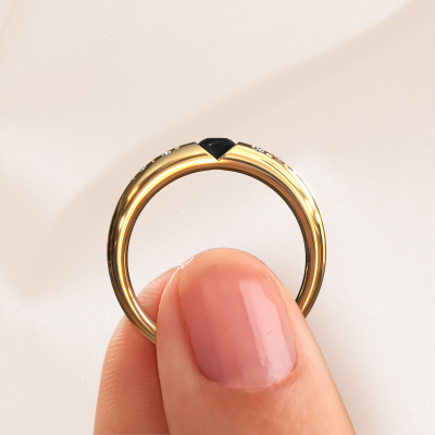 This modern ladies wedding ring is a melting pot of ancient craftsmanship, love, passion and the latest techniques. It requires a keen eye, patience and a skilful hand to create this gold wedding ring to perfection. And perfection is what our goldsmiths strive for! This way, you create an exclusive ring, which is customized to your liking and made by hand in our own artisan studio. This modern WH2104L34A wedding ring is set with black diamond 0.383 crt, is ±0.18 in wide and has a shiny finish. Gold represents love and therefore our goldsmith loves using it in the design of your modern wedding ring. We are a proud member of the Responsible Jewellery Council. This means we only use eco-friendly gold. Something we take great pride in, obviously. It is also possible to use your own gold in the design of your wedding ring. Each jewel is made by hand in our own artisan studio so we can offer this option. This gives you the opportunity to add an extra personal touch to your ring. A ring with its own history!Do you have specific wishes? Like a shiny ring, or a matte one? A wider band, or a smaller one? The possibilities of this wedding ring are endless. Be sure to contact our designers to adjust your ring to your personal taste. Did you see a ring somewhere, or do you have some special ideas of your own? Then don't hesitate to contact our designers and discuss your ideas for your own set of beautiful wedding rings. We are up for the challenge of creating the ring exactly the way you want it!Because we design our wedding rings ourselves, and deliver it directly to you, we can offer you wedding rings at a price you won't find anywhere else. Our rings are made to order, which helps prevent excess supplies, so we can make you a great price offer.To make it easier for you, we offer a 30 day return policy. Check our terms and conditions.
