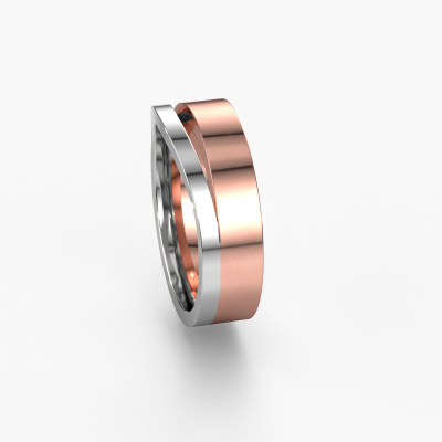 A unique two-tone rose gold ladies wedding ring, designed by you, and then artfully crafted by our goldsmith in our own artisan studio! A beautiful symbol, reflecting your love, which you carry with you for a lifetime! Each ring we offer is artfully forged by hand in our own crafting studio. This makes it possible for us to create you a ring which is customized to your liking, completely shiny your style. This modern WH6000L16AP wedding ring is set with black diamond, is ±0.24 in wide and has a shiny finish. Simply customize your gemstones and colours with our online tool. Our jewel designers will make a 3D drawing of your design, so you can see the result. Our goldsmiths will subsequently make your wedding ring by hand, according ancient craftsmanship. Our goal is to make the wedding ring you have in mind. A unique wedding ring to match your style completely!Do you have special preferences regarding your wedding ring? For instance, a smaller or a wider band? Or perhaps a shiny or a matte ring? There are numerous variations possible. You can always discuss the possibilities with our jewellery designers. If you have certain wedding rings in mind, our designers will gladly help by drawing the rings of your dreams. Be sure to contact us!By combining our modern techniques with ancient crafting, we can design and customize the finest quality jewels with the utmost care for you at the best price. Our wedding rings are always priced 30% lower than those of other jewellers. We make wedding rings to order so we don't have to maintain a large stock.To make it easier for you, we offer a 30 day return policy. Check our terms and conditions.